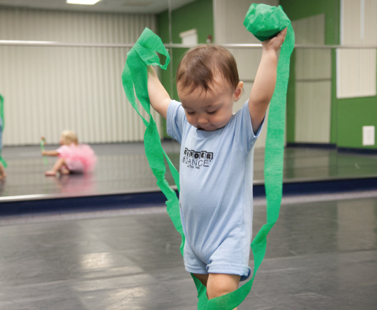 (ages 15-24 Months) Little movers and their favorite adult are involved in cute upbeat class filled with interactive songs and props that are just right for them! The class curriculum offers age appropriate exposure to developmental milestones through dance and sensory-motor activities while nurturing the bond between caregiver and child. Kinderdance certified teachers / instructors guide and dance along with caregivers as they participate and learn to facilitate the natural exploration and progression of motor development through play, laying the groundwork for academic success as the children grow. Children will have a smooth transition from Kinder “Dance With Me ® ” into the two year old program, Kindertots, when they are ready!
