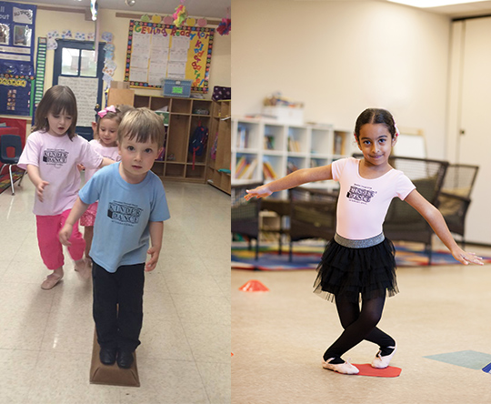 Kinderdance® for young children, ages 3-5, is a developmental dance, motor skill, music, and fitness program. Boys and Girls can be enrolled for up to 3 years with this 3 level program. Parents who want to give their child the opportunity to dance will love how Kinderdance® teaches the basics of Ballet, Tap, Acrobatics and Creative Movement while blending educational concepts. Children dance to original and familiar child friendly music while learning from Kinderdance® certified teachers / instructors. The program provides children with the potential to be creative, express themselves through movement, learn the foundations of ballet and tap, while building strong muscles, turn taking and social skills, self-confidence and self-esteem, all while age appropriate educational concepts that are already being taught in the daycare and practiced at home are reinforced.